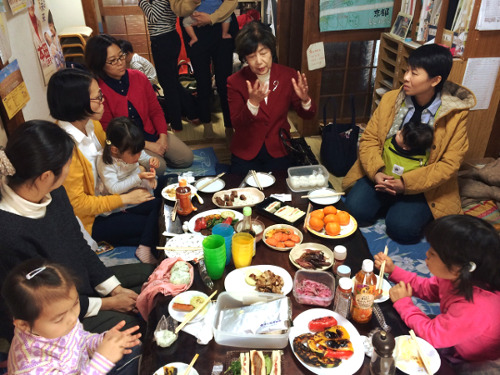 子育て世代のママ達やチビッ子達も大勢集まり、元教職員の市長選候補者本田久美子さんも訪問して下さり、ママ達からは、次々と本田久美子さんに育児問題についての意見や質問が飛び、今の京都市政が如何に問題を抱えているかを垣間見ることができました。